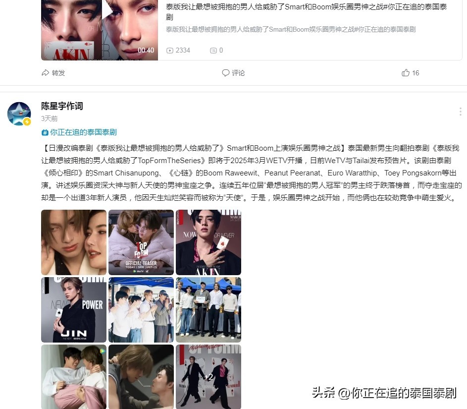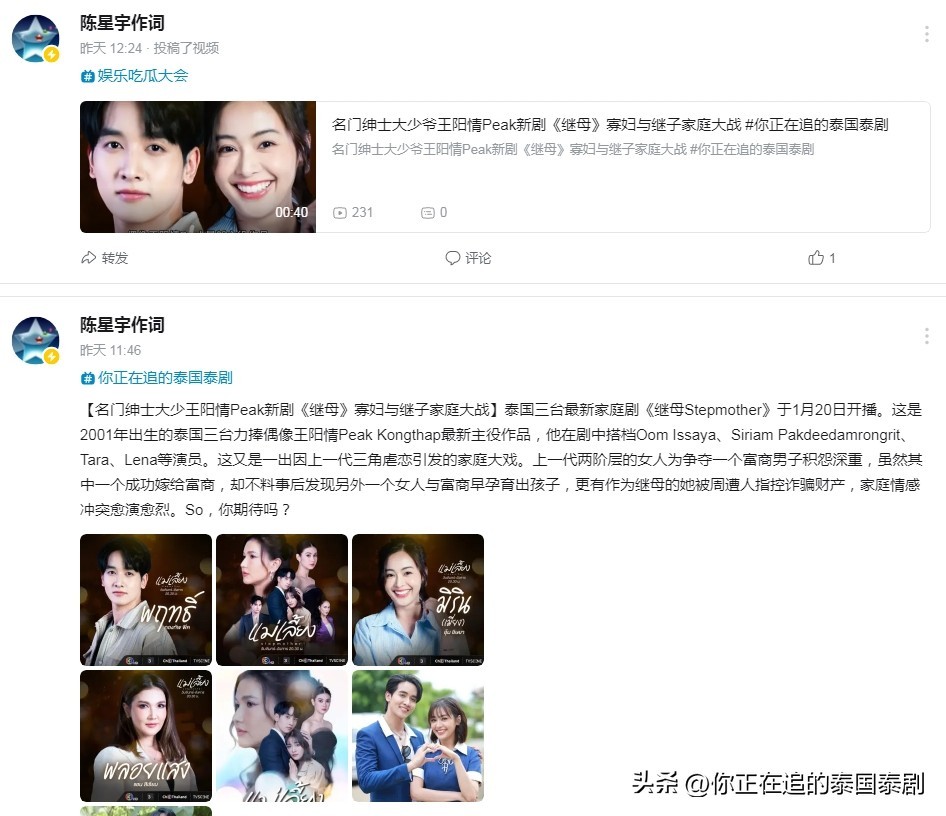 泰国娱乐文化媒体评论人,泰国音乐文化节目主编@陈星宇作词 专题分享。更多泰国文娱资讯可以关注【你正在追的泰国泰剧】或VB@陈星宇作词
