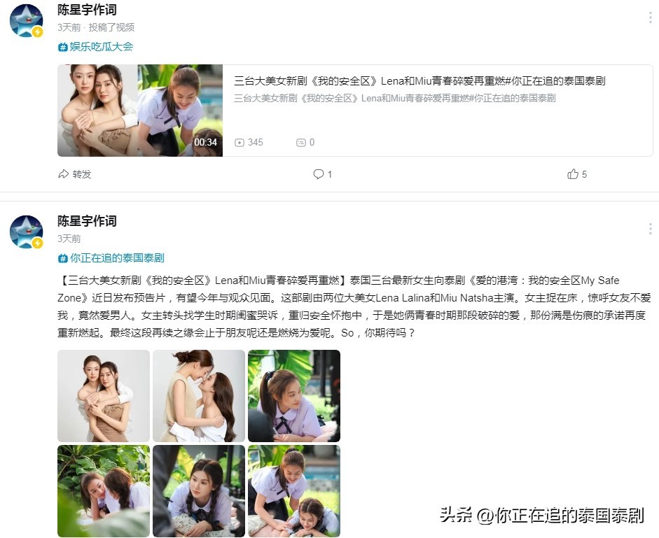 【三台大美女新剧《我的安全区》Lena和Miu青春碎爱再重燃】