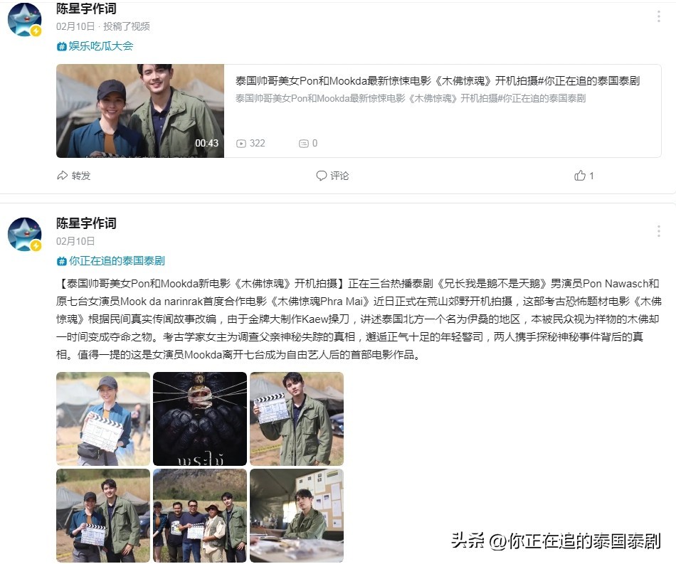 【泰国帅哥美女Pon和Mookda新电影《木佛惊魂》开机拍摄】
