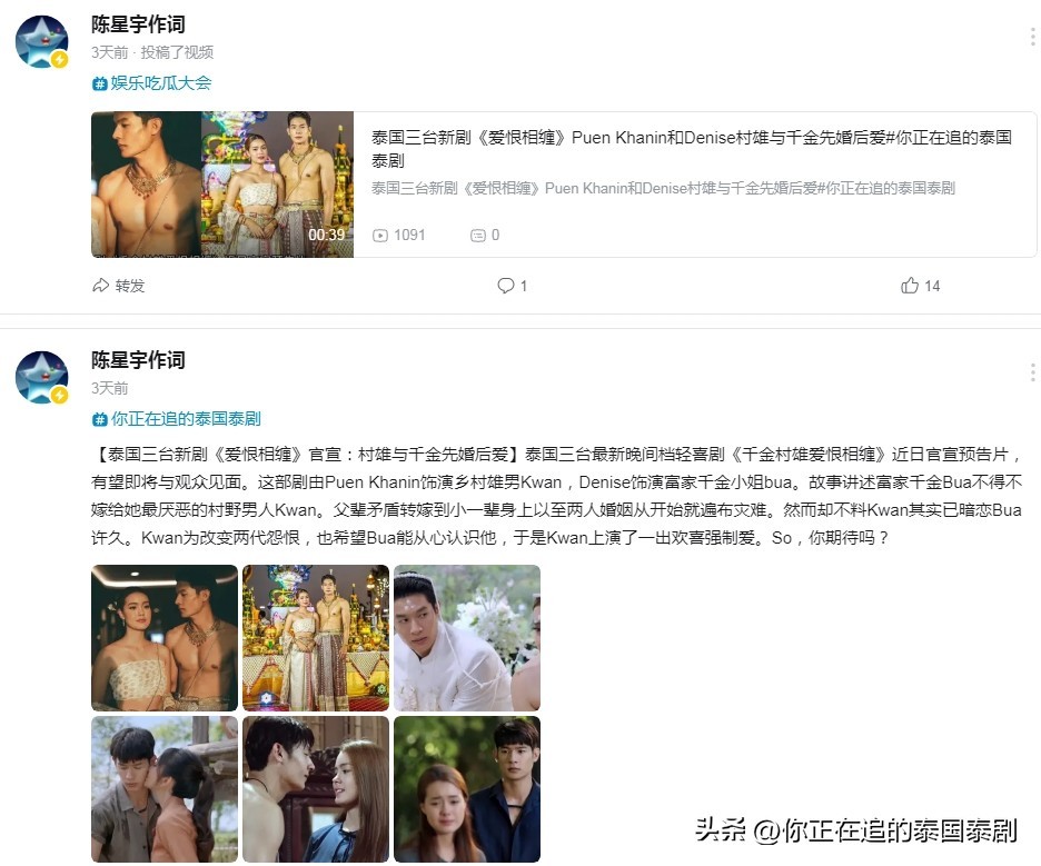 【泰国三台新剧《爱恨相缠》官宣:村雄与千金先婚后爱】