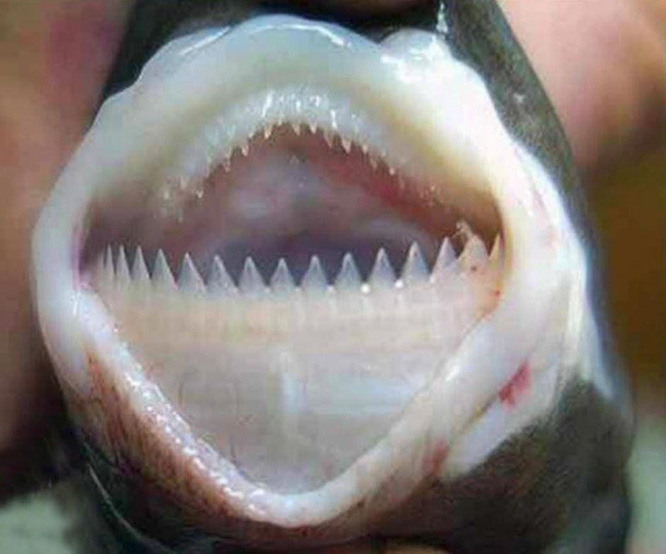 达摩鲨的嘴巴中有着锯齿状的牙齿,它们可以轻松的将猎物的一部分肉给切割下来,并且这样的设计可以无限的更换牙齿,所以达摩鲨可以在短时间内不断的迅速的将猎物的肉品给剜下来,这对于一种欺软怕硬的鱼类来说是一种非常强大的特征。