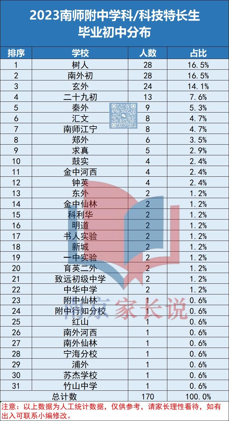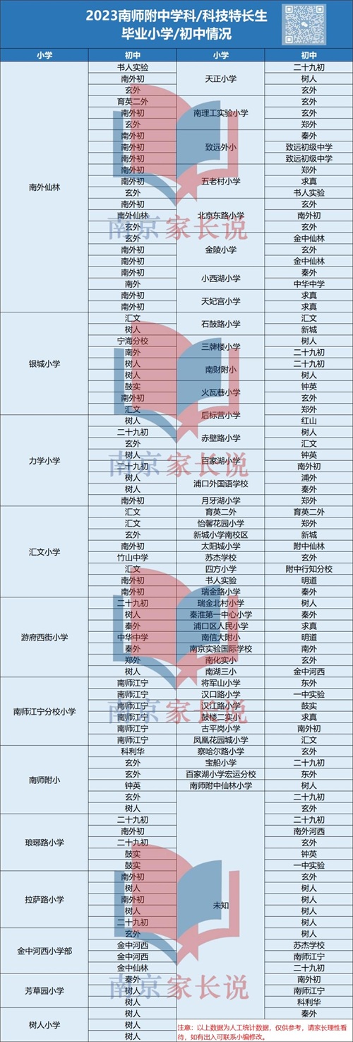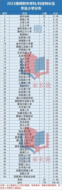 还有今年南师附中学科、科技特长生的录取数据,170名孩子的小学、初中情况汇总。