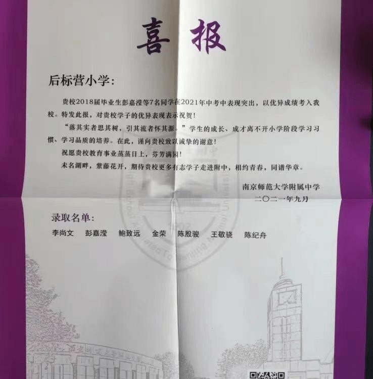 近几年,附中录取情况也成为了南京小学实力判断依据。前两年,南师附中还会给小学发喜报,一些“没名气”的小学也因此进入了大家的视线之中。家长高呼:“草小”也能出牛娃!