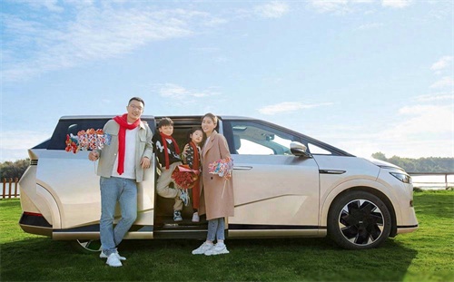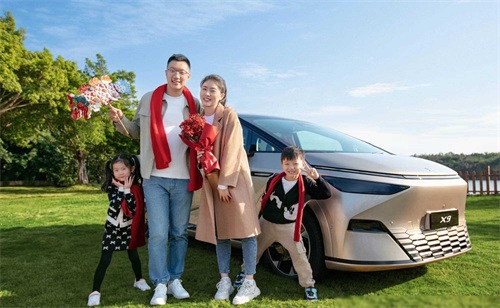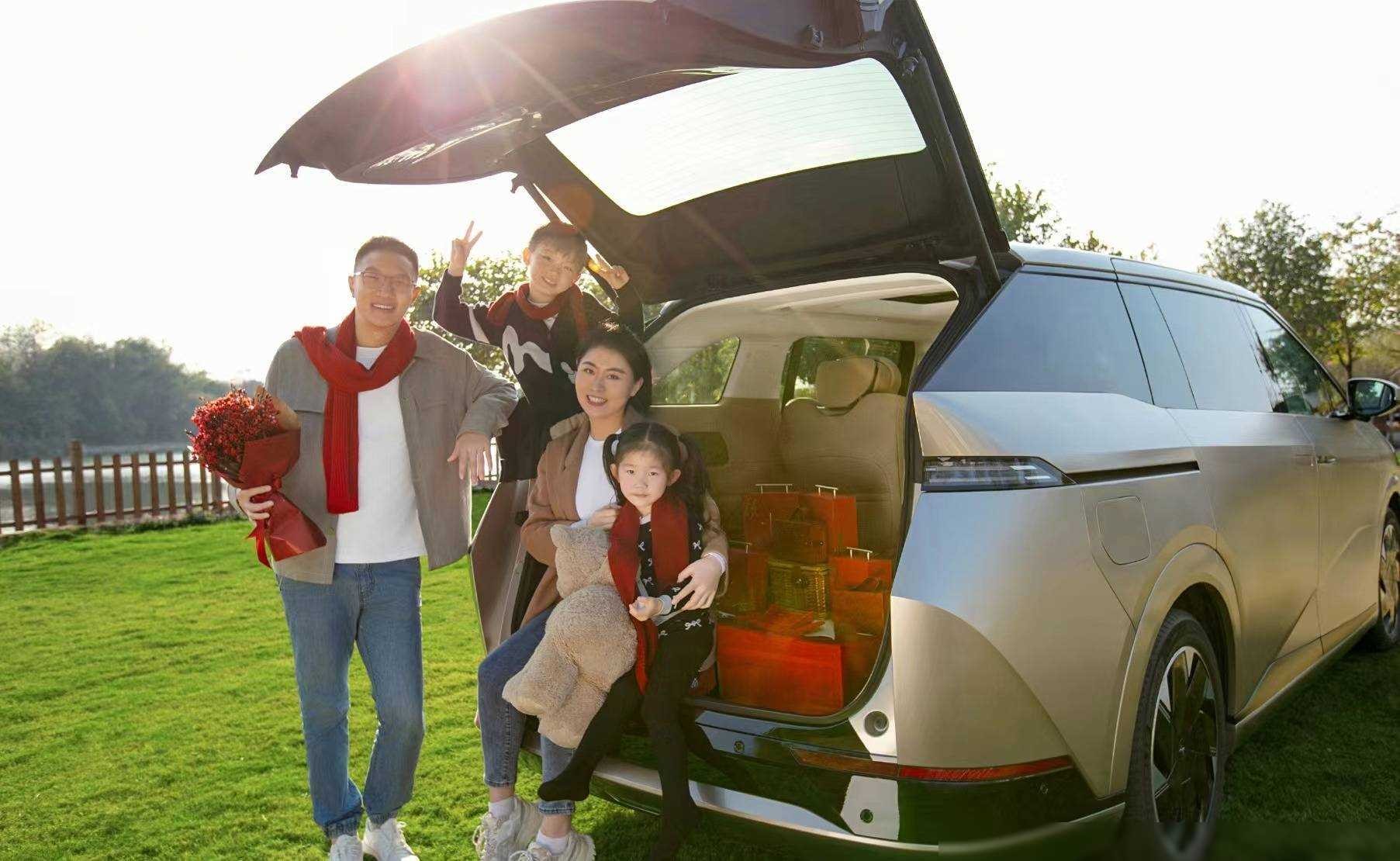 在车子侧面的照片中,焦刘洋与丈夫站在中间,穿着休闲装,笑容满面。他们的衣着简洁大方,散发着生活的舒适与自在。而儿子则展现出了男子气概,站在车旁,挺拔而自信。女儿则俏皮可爱,拉着父亲的裤子,展现出天真烂漫的童趣。这一家四口,彼此相依相偎,传递着无言的幸福。