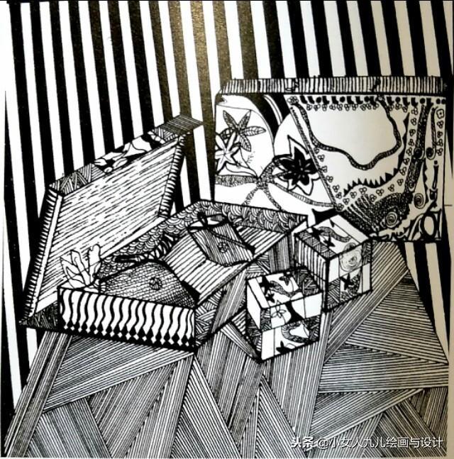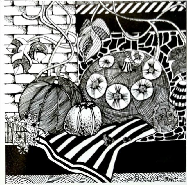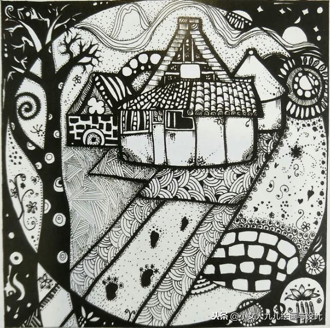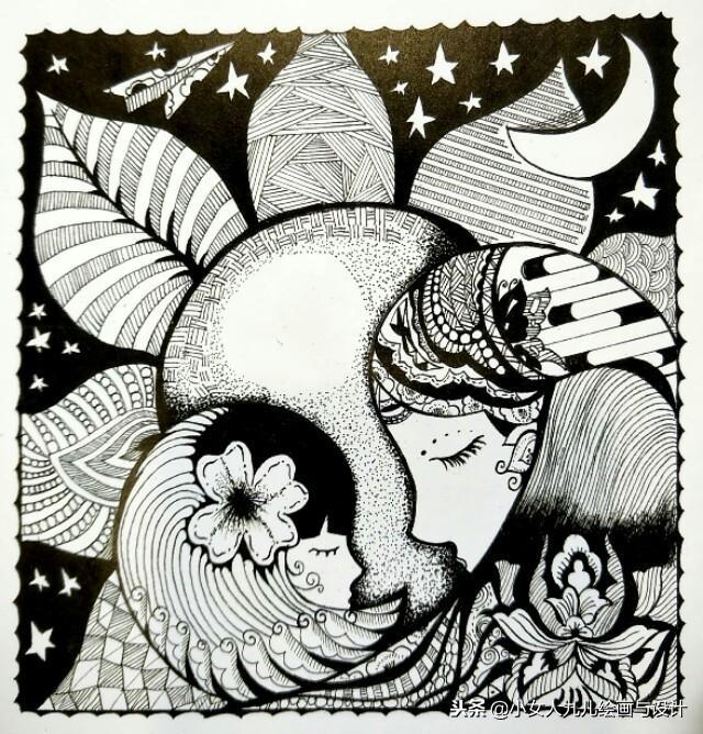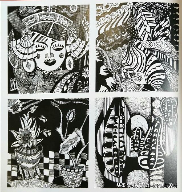 用点线面组成的漂亮黑白装饰画稿 线描稿 果断收藏