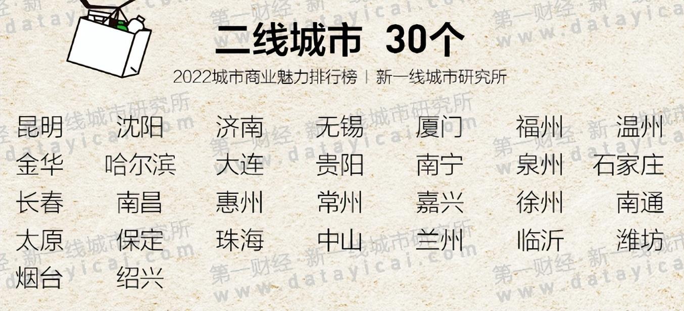 二线城市30个,榜首是昆明,去年是合肥。昆明曾经也进入过新一线城市榜单,但相比其它15个城市,实力确实有差距。