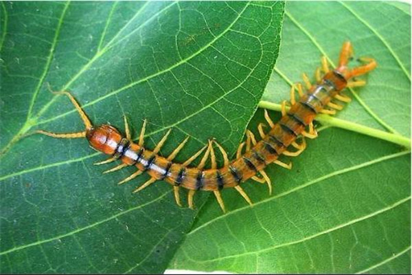 金头蜈蚣:长有42只脚的蜈蚣(又称为百脚虫)