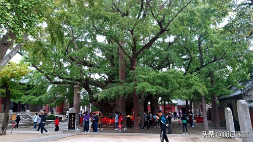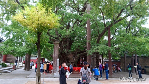 据考证已有1500年的历史,很有意思的是,这处景点的银杏树不是一棵,而是四棵,传说是一棵银杏树繁衍出了另外三棵,被称作“四世同堂”。很多游客在此处合影留念,以求吉祥美满之意。