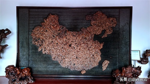 这幅根雕作品非常清楚,是一幅中国地图,让人称奇的是作品中的青藏高原地区竟然真的凸起一片。