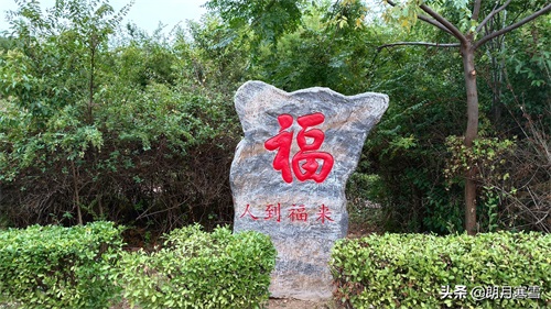 走出寻根馆不远,有一块石头上镌刻着大大的“福”字,下面还一行小字:人到福来。