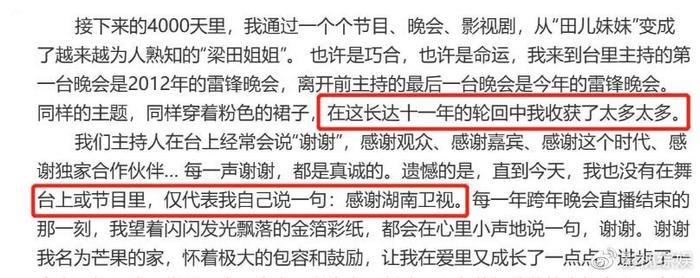 最近梁田也发文辞职,离开湖南卫视,但估计会继续在综艺影视圈发展,毕竟还年轻,不会这么早退休,虽然这些年辛苦也赚了不少钱。