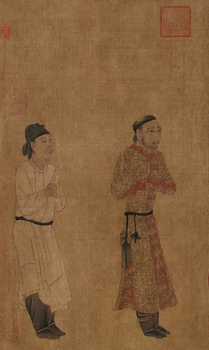 禄东赞后面的小文官个头稍微矮一下,但是却比禄东赞要强壮。这里作者也彰显出一个现象,天朝的人都是强壮高大的身形,以此彰显我朝的天威。