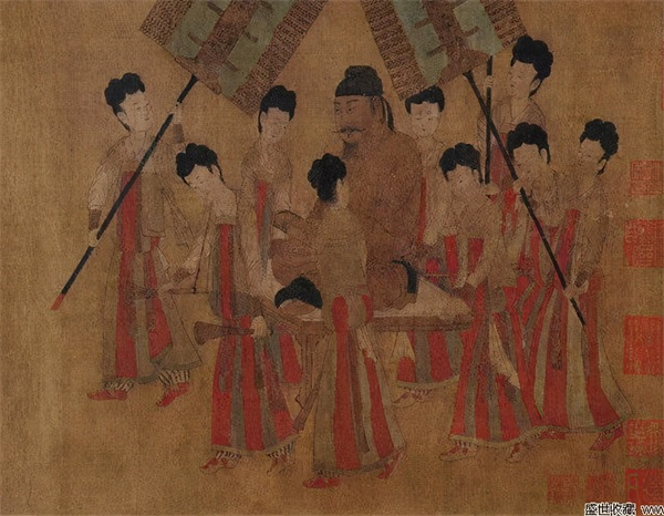 宫女皆是瘦弱矮小,以此来衬托唐太宗的高大伟岸。