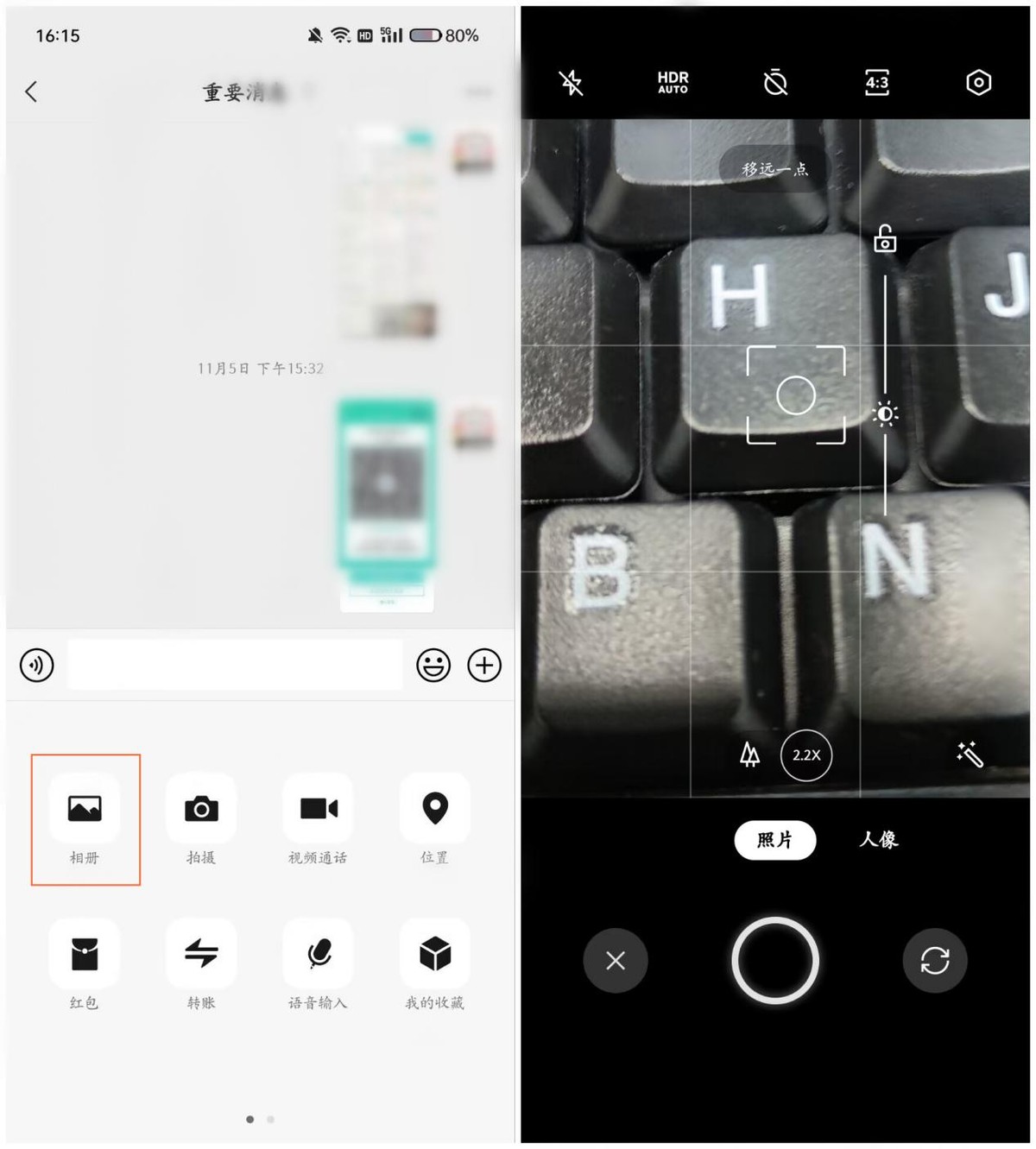 平时用微信拍照用到的是微信相机,拍出来的照片比系统相机拍出来的要模糊一些,而且还会被压缩。