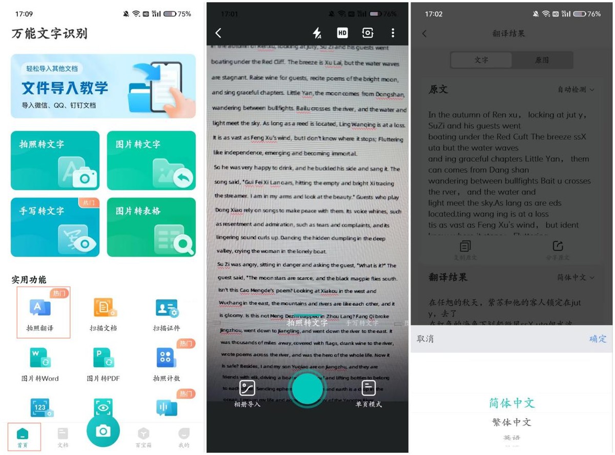如果你想要提取翻译结果或者是需要翻译比较多的内容,可以试试万能文字识别这个多功能的文字识别工具,可以直接拍照进行翻译,翻译结果可以复制或者导出为TXT格式的文档。