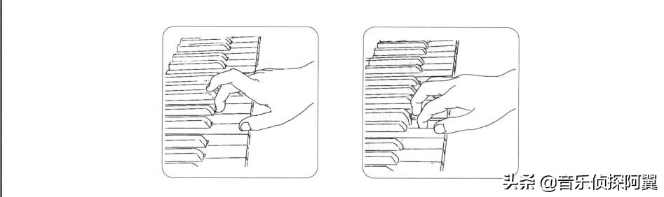 出了图中的触键方式方法外,大家还要注意不要“折指”