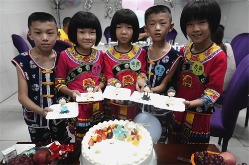 8月14日,家住内乡县桃溪镇黑山村的五胞胎来到南阳市中心医院,看望接生、照顾他们的护士“妈妈”。这天是他们10周岁生日,医院工作人员为孩子们精心准备了甜美的生日蛋糕,陪孩子们过了一个愉快难忘的生日。