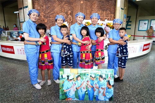 孩子们10周岁这天,他们一起回到市中心医院,向关心爱护他们的护士“妈妈”献上鲜花。孩子们依偎在护士“妈妈”的怀抱中,开心地说:“中心医院是我们的家,我们今天回家了!”