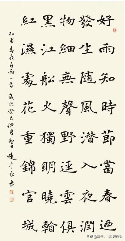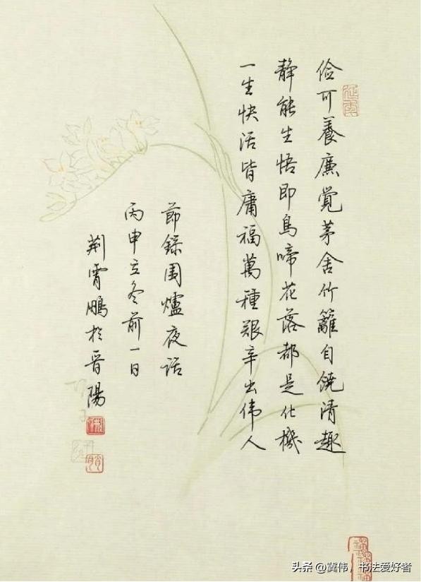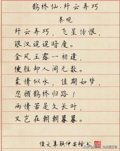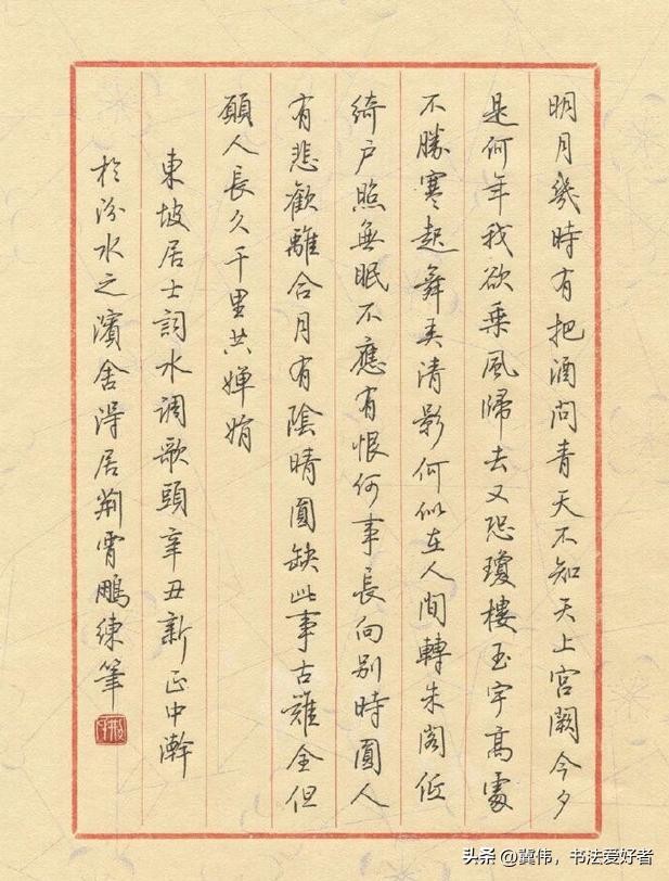 荆霄鹏所写的硬笔楷书作品,笔笔不苟,字字扎实,行间玉润,清秀隽永,给人以如沐春风之感。