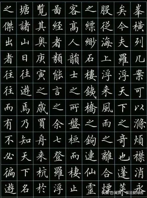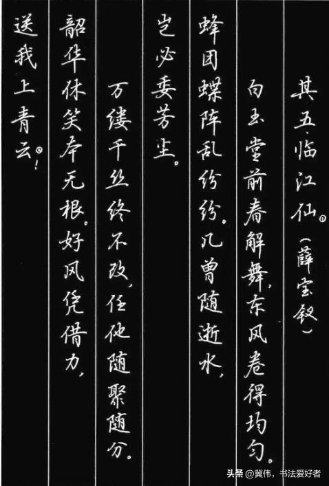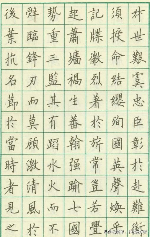田英章书写的硬笔楷书,字体均衡对称,线条流畅自然,笔画严谨精致,整体比较简单易学,通过对此勤加练习,可以让我们很快地写出一手漂亮的硬笔书法。有人黑田英章的毛笔书法,但你绝对不能黑他的硬笔书法,天斧神工之妙!