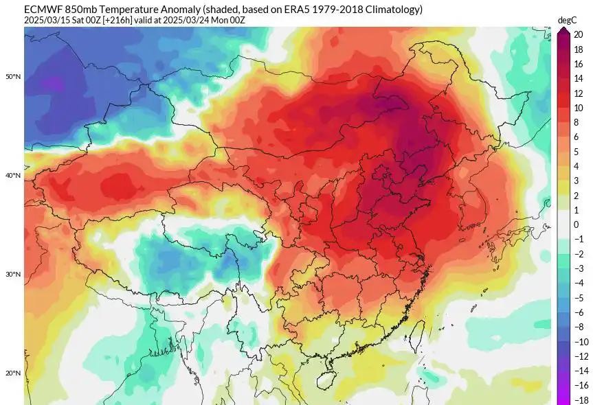 整体上来说,这一波大回暖是直奔我区“同期偏暖”的模式狂飙。按照趋势来看,这一波升温在“火力全开”之下,最高气温20℃范围将可能扩大到西中部和东南部区域,比如乌海、临河、二连浩特、赤峰、通辽等地3月20日以后的最高气温都将有望达到20℃+,进入真正气象学意义上的春天。