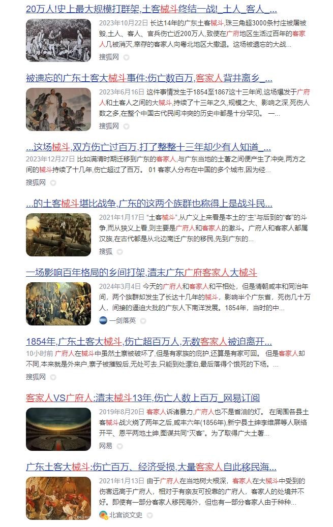 诸如“广府人为何歧视客家人”、“客家人与潮汕人不和”“客家人好斗”、“客家人喜欢抢东西”等言论层出不穷。