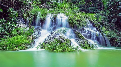 梦幻谷。巨石、巨榕,热带阔叶林,流泉、叠瀑等景观。