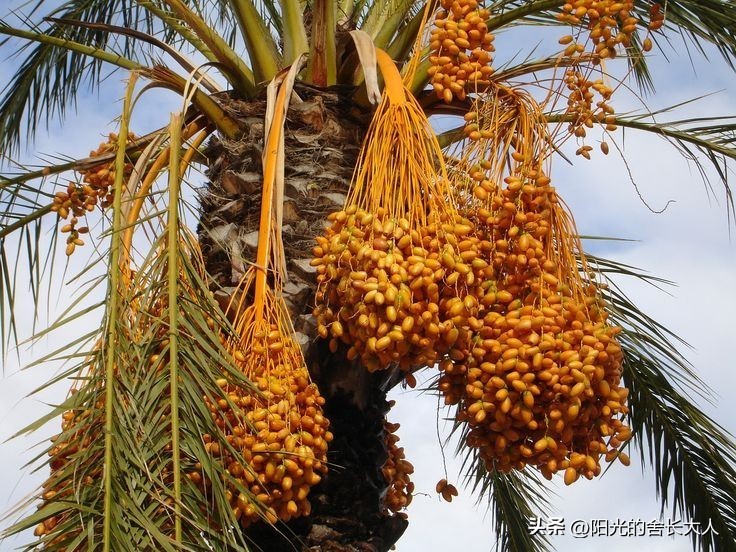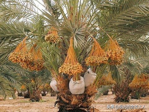 椰枣树在北非、中东和南亚被广泛种植,雌雄异株,长椭圆形果实状似枣,味甘甜,可直接食用、制作蜜饯或甜品。