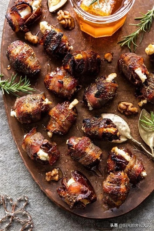 在西班牙东南部,通常用油炸去核的椰枣被裹在培根里浅炸。