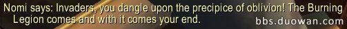 诺米:入侵者,你们必将被湮没!燃烧军团会降临,你们都要死!