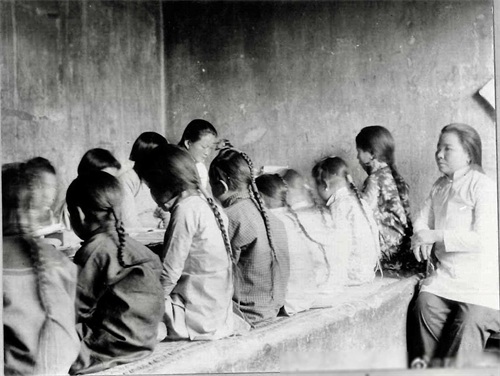 还有这张民国初年的女学校照片,看着就挺有意思的。那时候的女子也能上学了,真是挺难得的。不过话说回来,那时候的学校条件肯定也挺艰苦的,能上学也不容易啊。