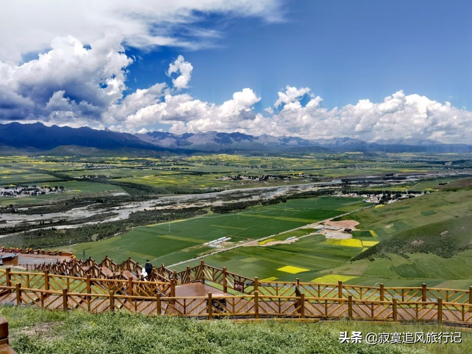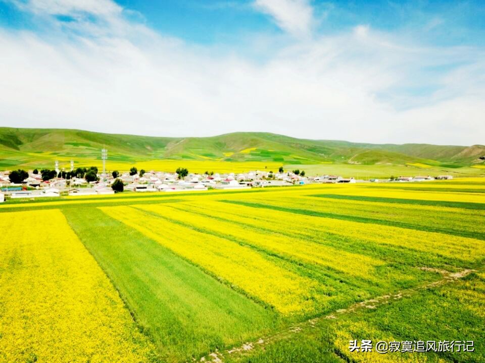3. 出青石嘴镇,走门源到祁连县的道路两旁,有大片的青稞地和油菜花地,黄色和青翠色搭配蓝天白云,非常漂亮。推荐。