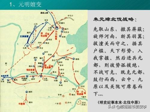 在作战上,虽然朱元璋的部队大多数来自于江准和江南地区,但在战场上,明军对阵元军毫不落下风,哪怕面对的是蒙古骑兵。徐达、傅友德、常遇春和蓝玉以及后来的明成祖朱棣不愿意放过这些逃到长城以北的败兵,相继带兵杀出长城,深入草原、大漠,跑到草原本来以为没事的蒙元残余势力生生地打得再也无法重生了。公元1378年,明朝大将蓝玉带领北伐,将原属于成吉思汗的黄金家族在草原的威望彻底打到地上,其他草原部落则乘机找到发展的缝隙,之后的草原就变得更乱了。