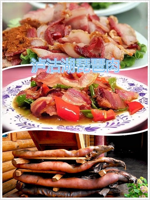 琵琶肉是泸沽湖畔摩梭人家独有的传统美食,也叫猪膘肉,整头猪除头骨以外的骨头全部剔除,加以辅料,风干至两年以上。每年冬季走进摩梭人的村子里家家户户都要制作猪膘肉,