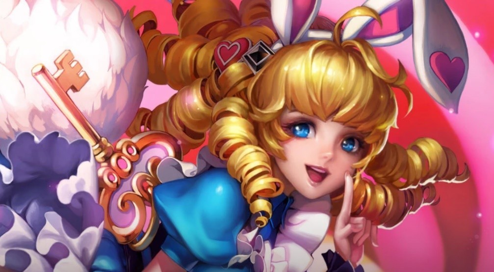 但是王者里仙境爱丽丝的创新之处,则是把爱丽丝的人类形象与白兔形象做了一个三重叠加,成为了一个可爱的金发兔耳娘形象。
