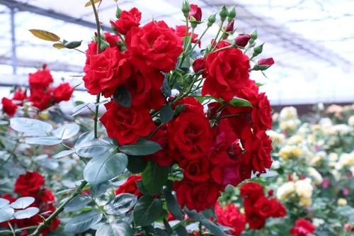 月季御用马车,深红色的花朵,一款华丽的攀援玫瑰