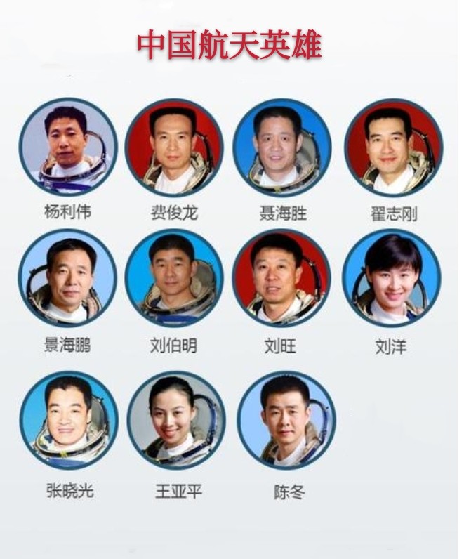 一、杨利伟 少将,特级航天员, 2003年10月15日9时乘神舟五号飞船进入太空,是我第一位进入太空的航天员。