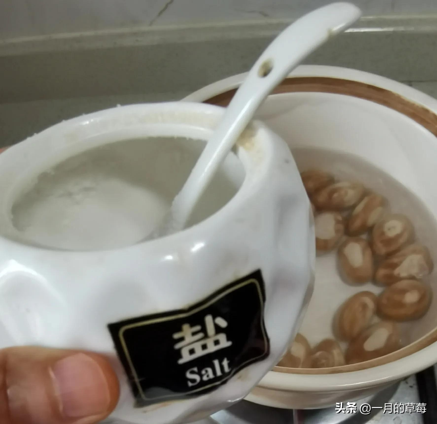 加入适量清水,点火,水烧开后,放点盐,然后盖上盖,继续小火再煮10分钟。