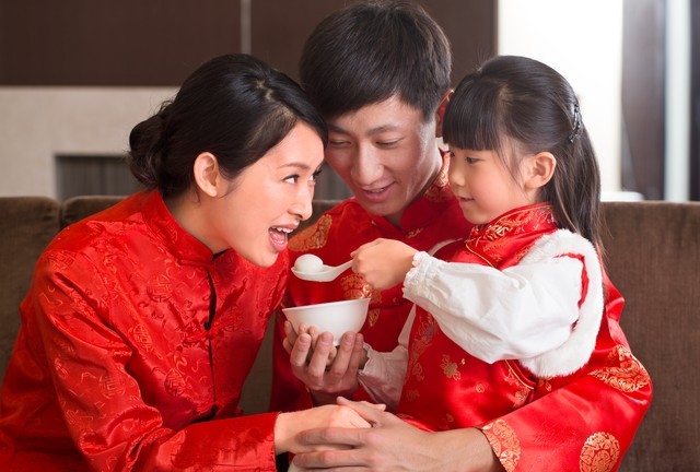 During the Lantern Festival, families gather to enjoy glutinous rice balls together.