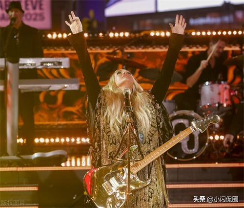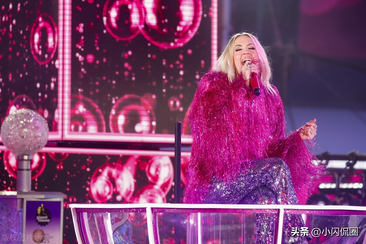 当地时间2024年12月31日,美国纽约,凯莉-安德伍德(Carrie Underwood)亮相时代广场跨年之夜表演舞台(2025 New Year's Eve in Times Square)。