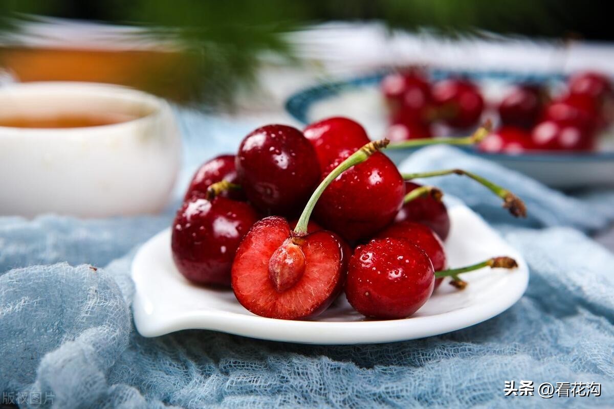 38.桐柏县的著名特产-南阳大樱桃。大樱桃,蔷薇科,李亚科,樱属植物。乔木,高2-6米,树皮灰白色。小枝灰褐色,嫩枝绿色,无毛或被疏柔毛。冬芽卵形,无毛。果实可以作为水果食用,外表色泽鲜艳、晶莹美丽、红如玛瑙,黄如凝脂,果实富含糖、蛋白质、维生素及钙、铁、磷、钾等多种元素。集中种植于风景如画的杏花山下,远离城市,没有污染,采用自然模式种植,果个大,果形美,色泽鲜艳,果味甜美,成熟早,是一种在特殊环境条件下运用原始方式种植出来的高档水果,营养极为丰富,深受人们喜爱。 南阳市目前种植的大樱桃品种有红灯、意大利早红、雷尼、撒弥特、拉宾斯、先锋、红艳、红蜜、斯特勒等10个优良品种。
