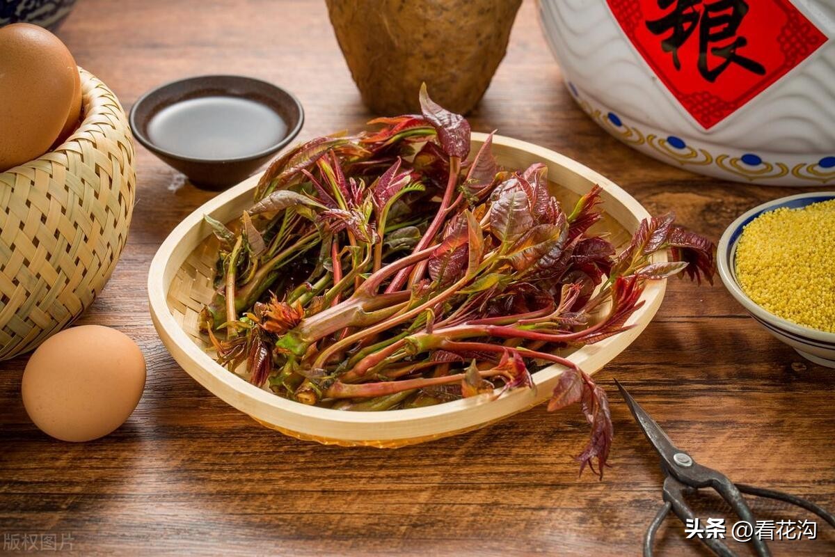 33.桐柏县的著名特产-桐柏香椿。芽肥叶厚,色泽紫红,香脆可口,气味浓郁。桐柏县以浅山、丘陵为主,主脉沿线山高谷深,沟窄坡陡,主峰太白顶海拔1140m,雄伟壮观。余脉伸至中部、北部和东北部,呈指状放射,形成大面积浅山和丘陵,800多个山岭,700多条岗丘相接相连遍布全县。全县共有3个土类,9个亚类,18个土属,74个土种。其中黄棕壤面积最大,主要分布在低山、丘陵、缓岗,占全县土壤面积的82.8%,是主要的林业土壤。成土母岩为花岗岩、片麻岩,包括黄棕壤、黄褐土和粗骨性黄棕壤、粗骨性黄褐土4个亚类;潮土类主要分布在三夹河、淮河及其支流沿岸,适宜种植香椿。