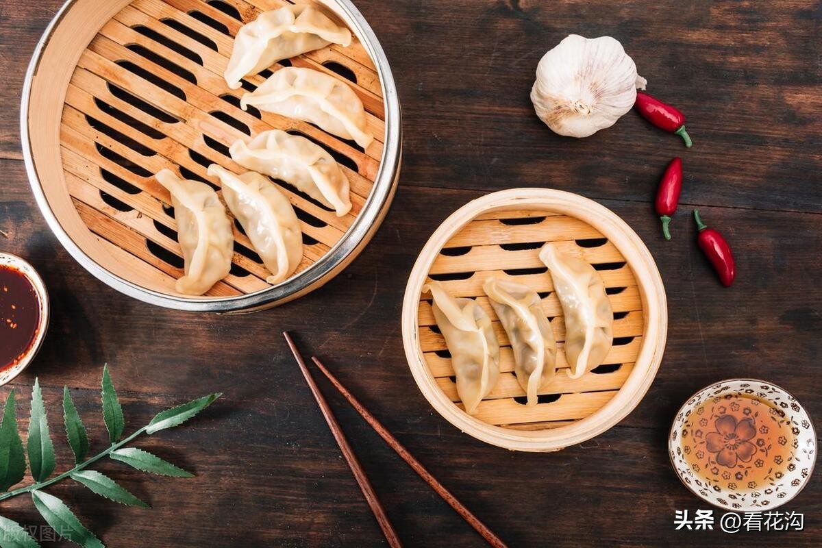 35.桐柏县的美食小吃-桐柏蒸饺。原料酱油50克,猪油25克,芝麻油15克,葱花50克,姜末7.5克,味精1克,花椒面D.5克,精盐1.5克。精粉500克,猪肉250克,青菜250克。将猪肉剁成馅,加入酱油、精盐拌匀,再放入花椒面、猪油加入水向一个方向搅动,至搅匀为止,把青菜洗净剁碎,挤净水分,放在肉馅内加入味精、葱花、姜末、芝麻油拌匀成馅。把精粉放在案板上用开水烫熟拌成雪花状,揉成面团,揉匀搓成长条,下成50个剂子,撒点干面按扁,擀成圆形薄皮。左手拿皮子,右手抹馅,然后用手顺饺子皮边,从右到左捏合在一起,做成月牙形的饺子。将饺子摆在锅内蒸10分钟左右即熟。