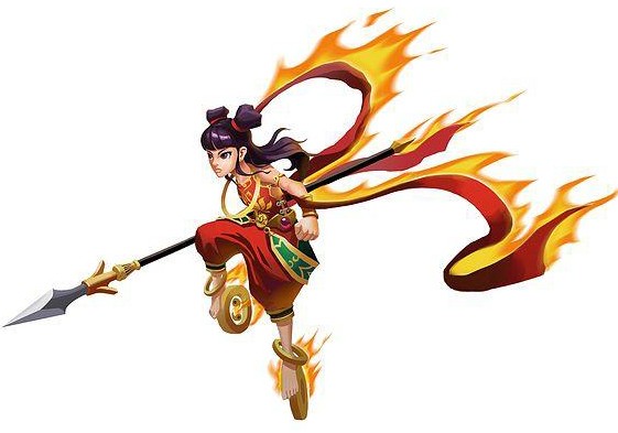 明嘉靖年间《西游记》中哪吒:总角才遮囟,披毛未苫肩。神奇多敏悟,骨秀更清妍。诚为天上麒麟子,果是烟霞彩凤仙。龙种自然非俗相,妙龄端不类尘凡。身带六般神器械,飞腾变化广无边。武器法宝为斩妖剑、砍妖刀、缚妖索、降妖杵、绣球儿、火轮儿。此时的哪吒身为天庭正神,职司斩妖诛魔。