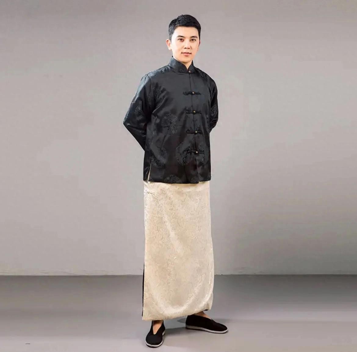 对于男性而言,长袍马褂犹如一首悠扬的古典乐章,深沉而稳重。那流畅的线条,精致的剪裁,彰显着传统的韵味,让身着者透着一种儒雅与庄重。