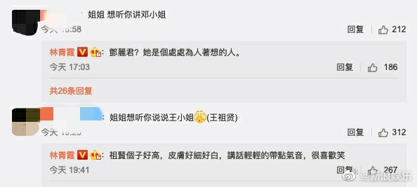在网友晒出的截图中,林青霞夸赞邓丽君是一个处处为人着想的人,称称邓丽君的全名应该是为了确定网友所说的邓小姐是否是邓丽君,在夸赞王祖贤时,林青霞则亲昵地称呼她为"祖贤",并表示"祖贤个子好高,皮肤好细好白,讲话轻轻的带点气音,很喜欢笑。"梅艳芳是一个有义气的江湖儿女,三毛为爱情而活......