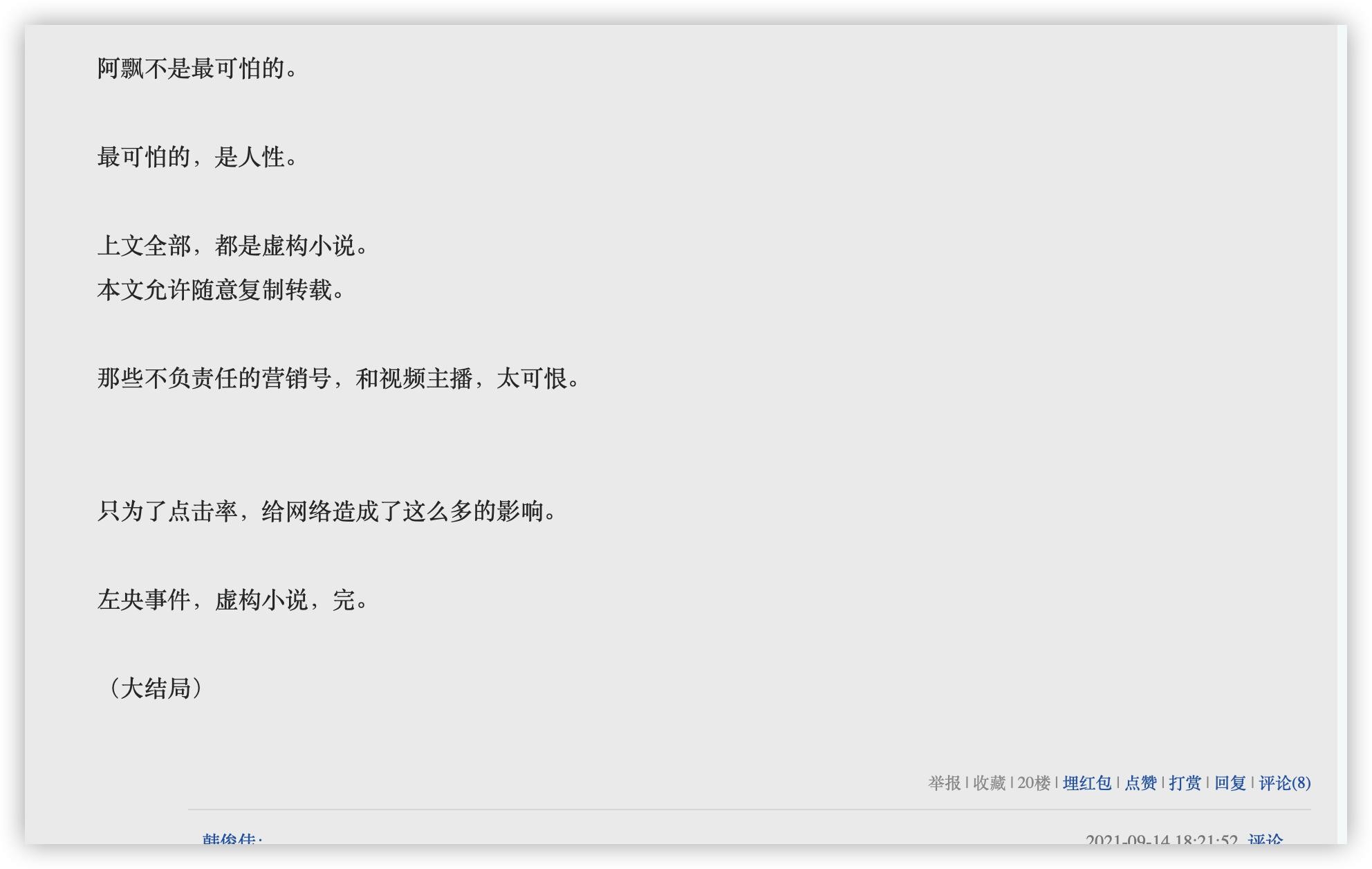 2021年7月,这篇“说明帖”也完结了。有意思的是,这篇贴子并没有受到多大的关注,大家的记忆似乎更喜欢停留在当年“左央事件”。