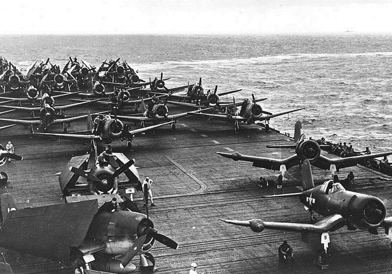 美军航母上的轰炸机在一天之内反复出击,当夜幕降临,战火暂时停息时,以一天投弹900多吨的成绩,打破了美军单日投弹量的纪录。