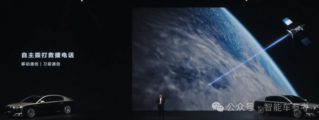 这款车首发了华为星河通信,余承东介绍,“哪怕信号再弱,卫星能连上。”