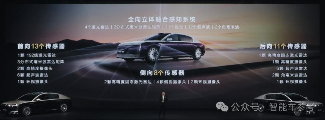 作为对比,鸿蒙智行最贵的问界M9全车配备了27个传感器,只有1颗192线激光雷达。